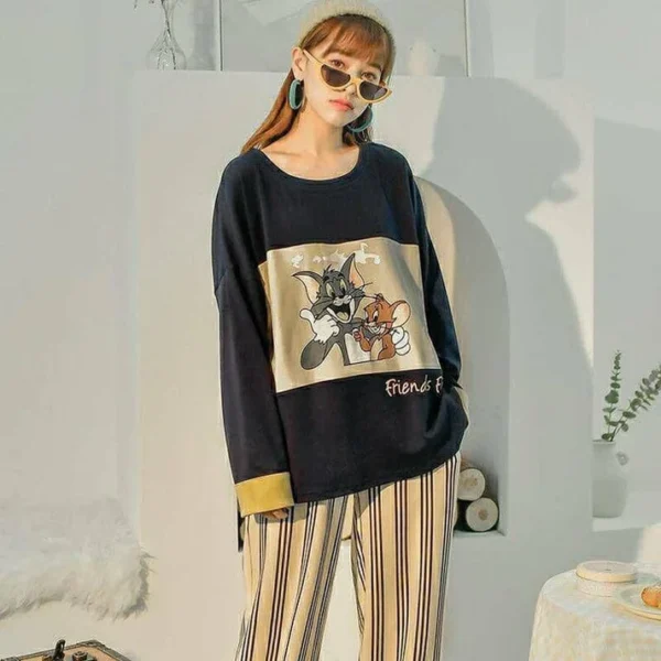 - 2 Pcs New Tom & Jerry Printed Design Night Suit For Girls PJs Suit Full Sleeve Night Suit very attractive and trendy design….