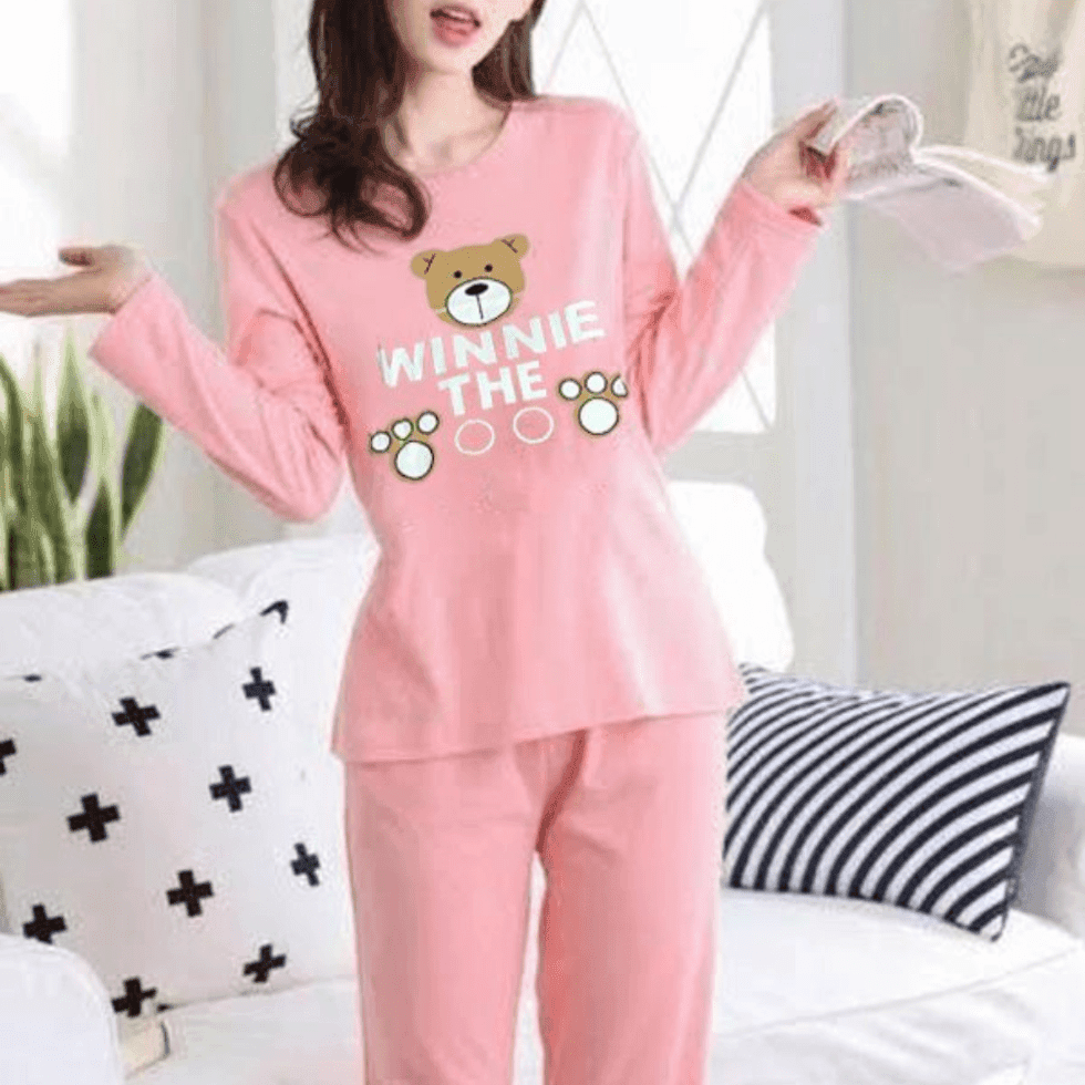 Nightydress.com offer 2 Pcs Pink Winnie Printed Long Sleeve Pajamas Sleepwear Night Suits For Women PJs in Pakistan with free in cities in Pakistan. Sleep in Style: 2 Pcs Pink Winnie Printed Long Sleeve Pajamas Sleepwear Night Suits For Women PJs price in Pakistan in Rs. 1200