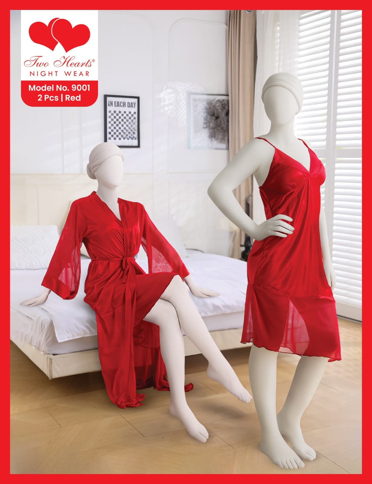 2 Piece Silk Nighty with Long Net Gown Set – Premium Ladies Nightwear for Comfort & Style