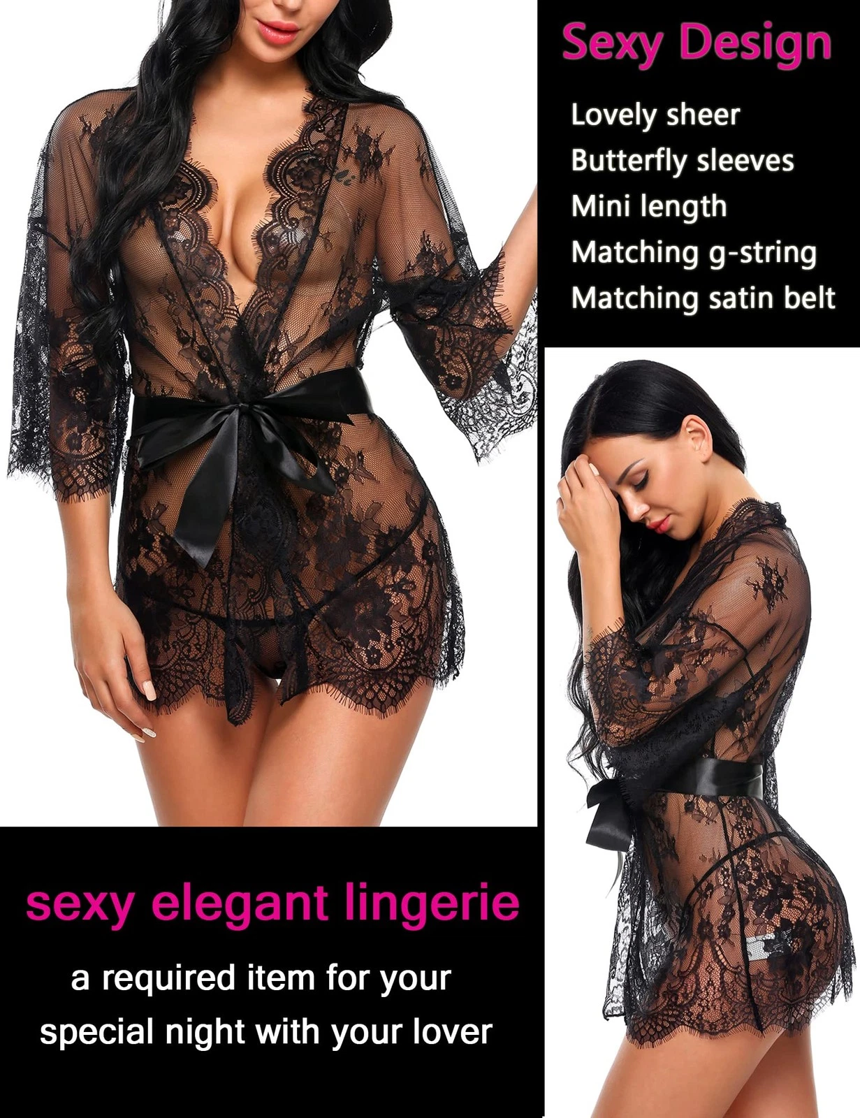 Black Lace Babydoll Nightgown for Women – Sheer Lingerie